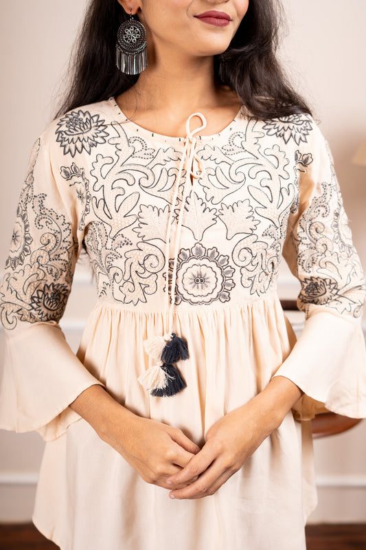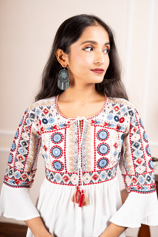 Love how it blends classic embroidery with a modern cut. Very comfortable to wear all day.