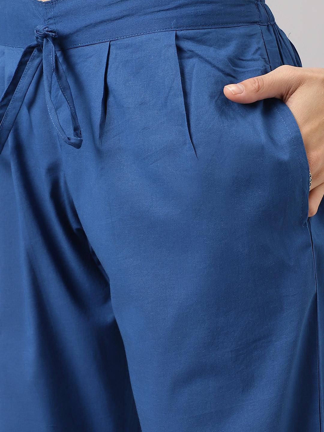 Blue Floral Printed Kurta Pant Set with dupatta -  world