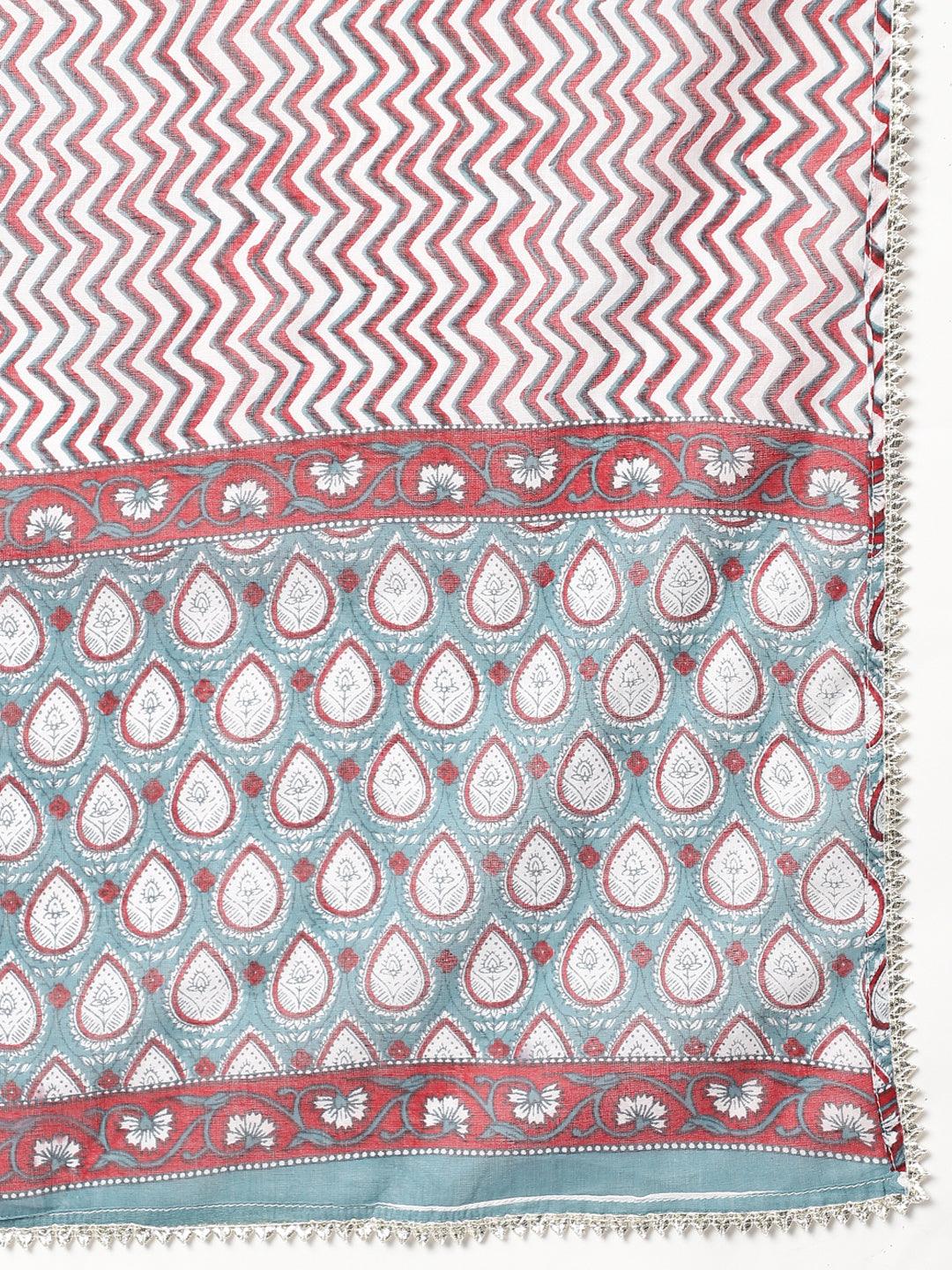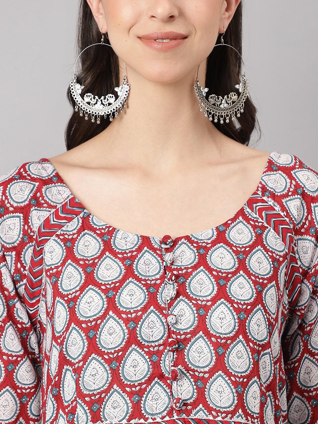Maroon Cotton Anakali Kurta pant set with Dupatta -  world