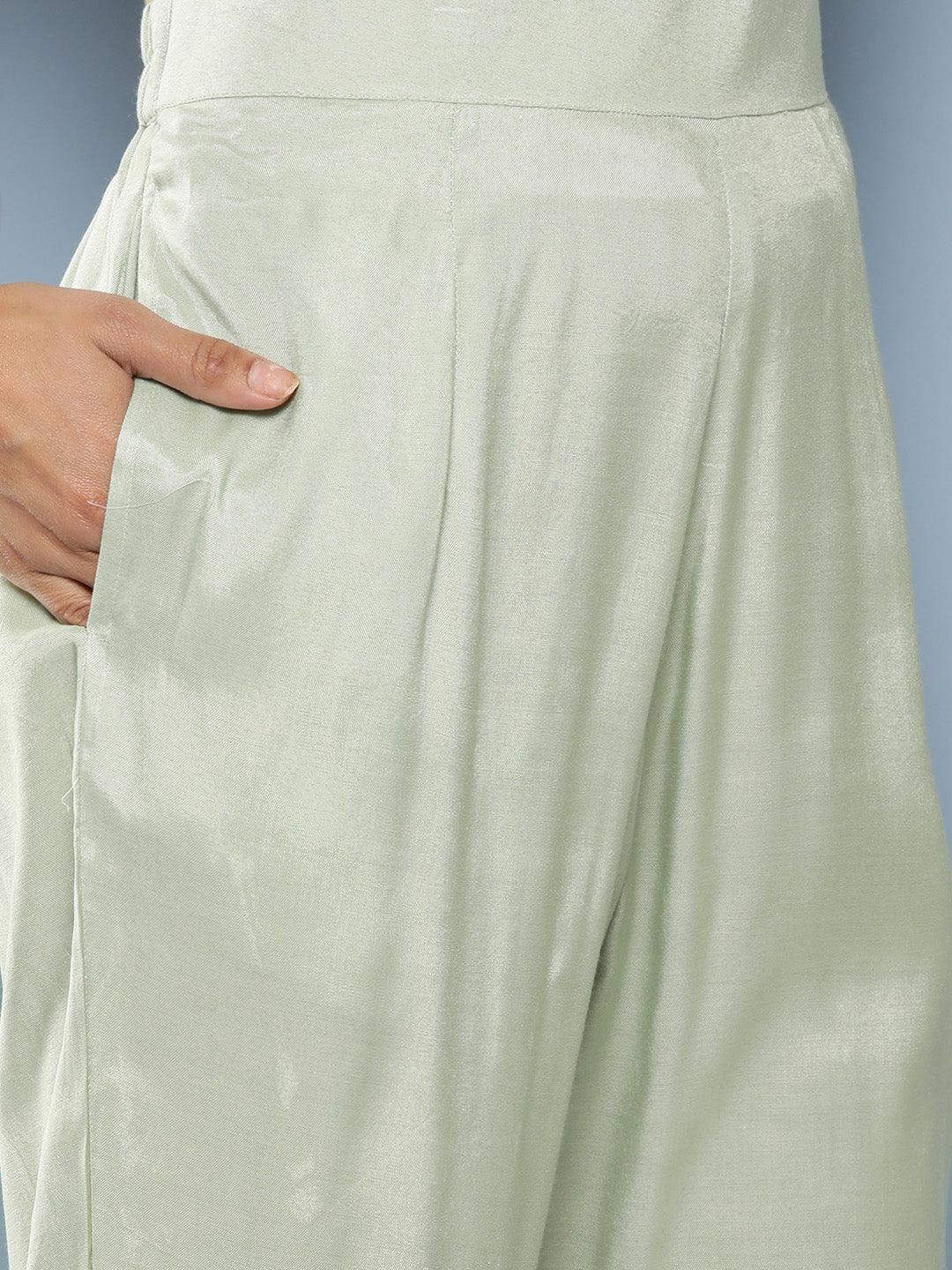 Poly Chanderi Floral Printed Kurta Pant Set with Organza Dupatta