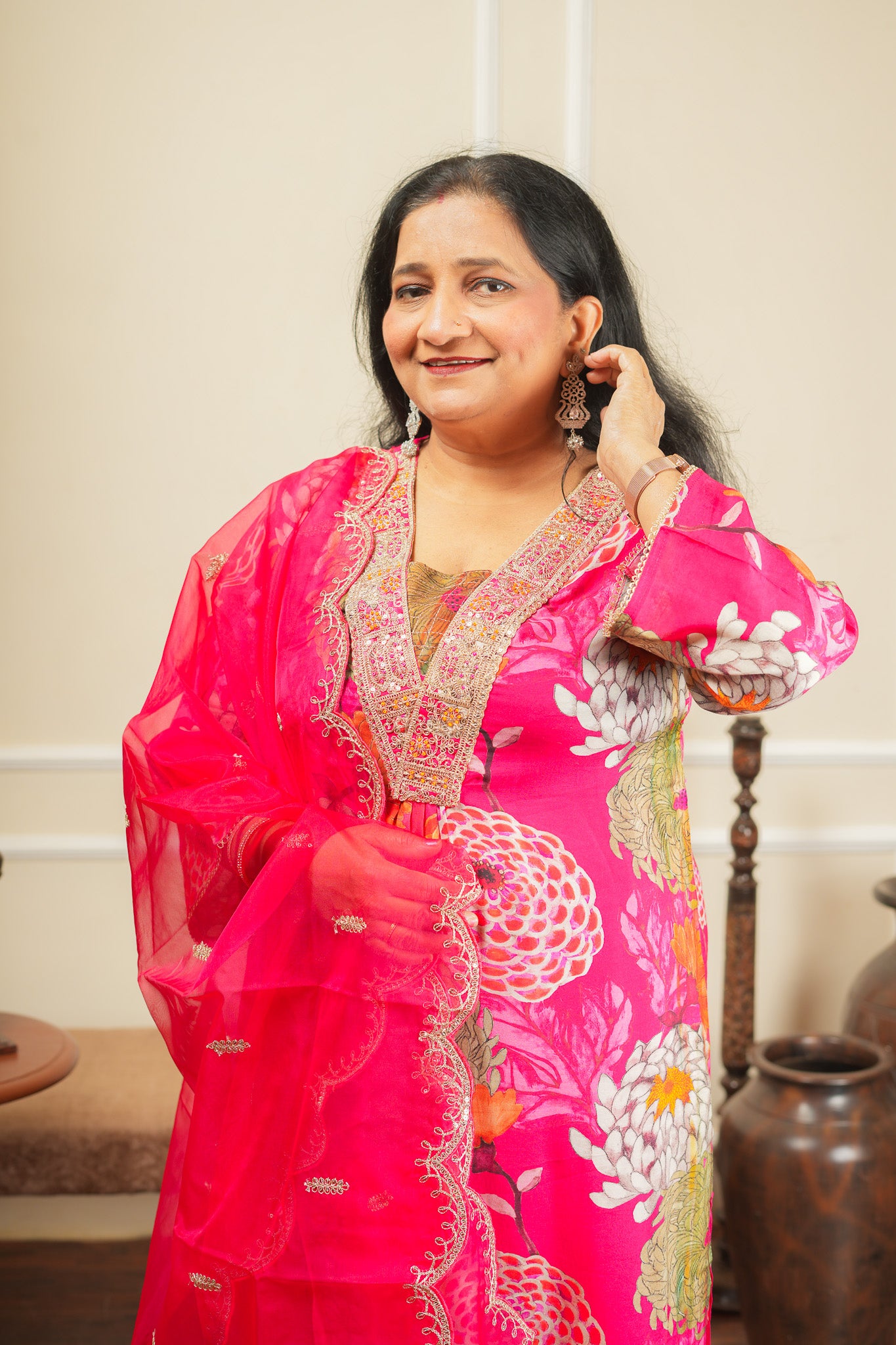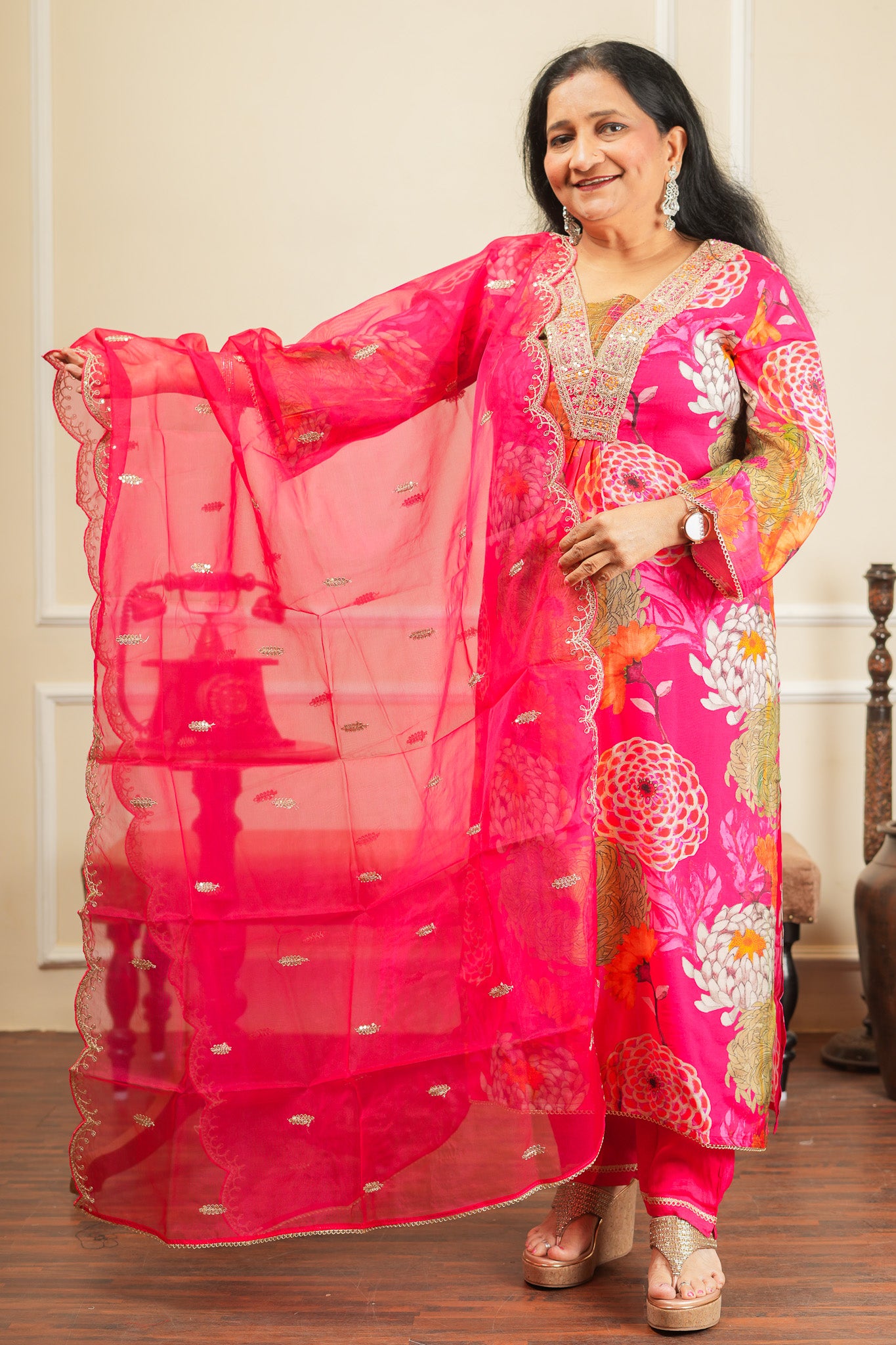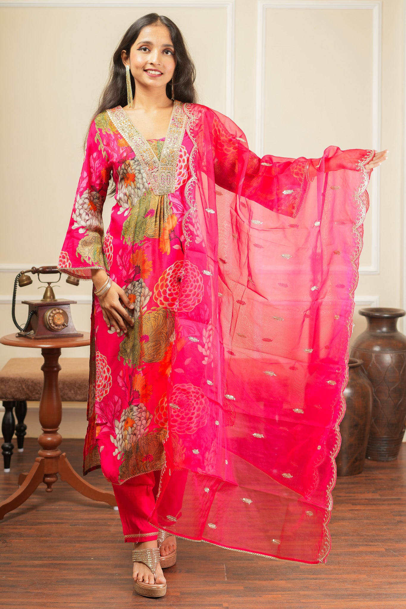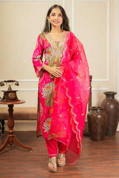 Ragini Bloom Kurta Set With Dupatta - Pink